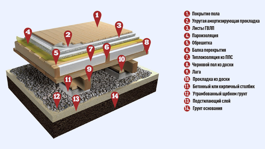 Разработан шаблон спецификации в соответствии с ГОСТ Р 21.1101-2013. Пол на лагах по грунту над холодными подпольями с черновым полом, теплоизоляцией из пенополистирольных плит ППС15-Т, пароизоляцией и обрешеткой из досок и стяжкой из гипсоволокнистых листов. Применяется в малоэтажном строительстве.