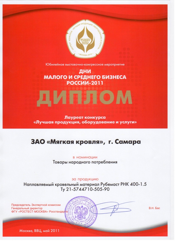 В этот же день состоялось вручение национальной премии Торгово-промышленной палаты РФ в области предпринимательской деятельности «Золотой Меркурий 2011». ЗАО «Мягкая кровля» победило в номинации «Лучшее предприятие-экспортер в сфере промышленного производства».